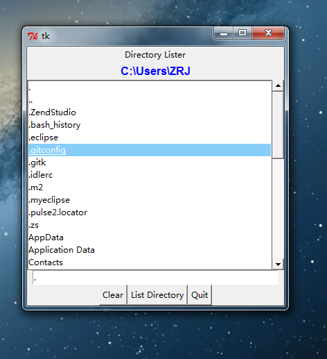 照书敲了一个列出当前路径下所有文件的工具,GUI 框架用的 tk,一个小提示,保存时存为 pyw 后缀可以避免在双击运行程序时出现命令行窗口: