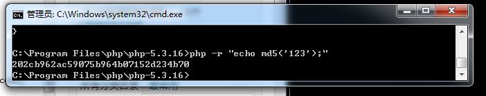C:Program Filesphpphp-5.3.16>php -r "echo md5('123');"