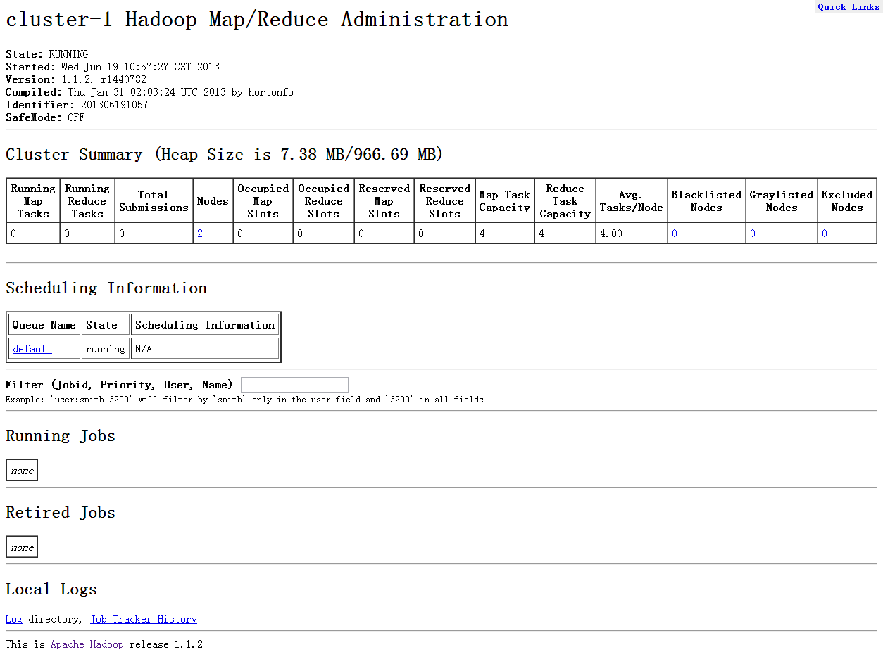 13/06/19 11:15:36 INFO mapred.JobClient: Running job: job_201306191057_0002